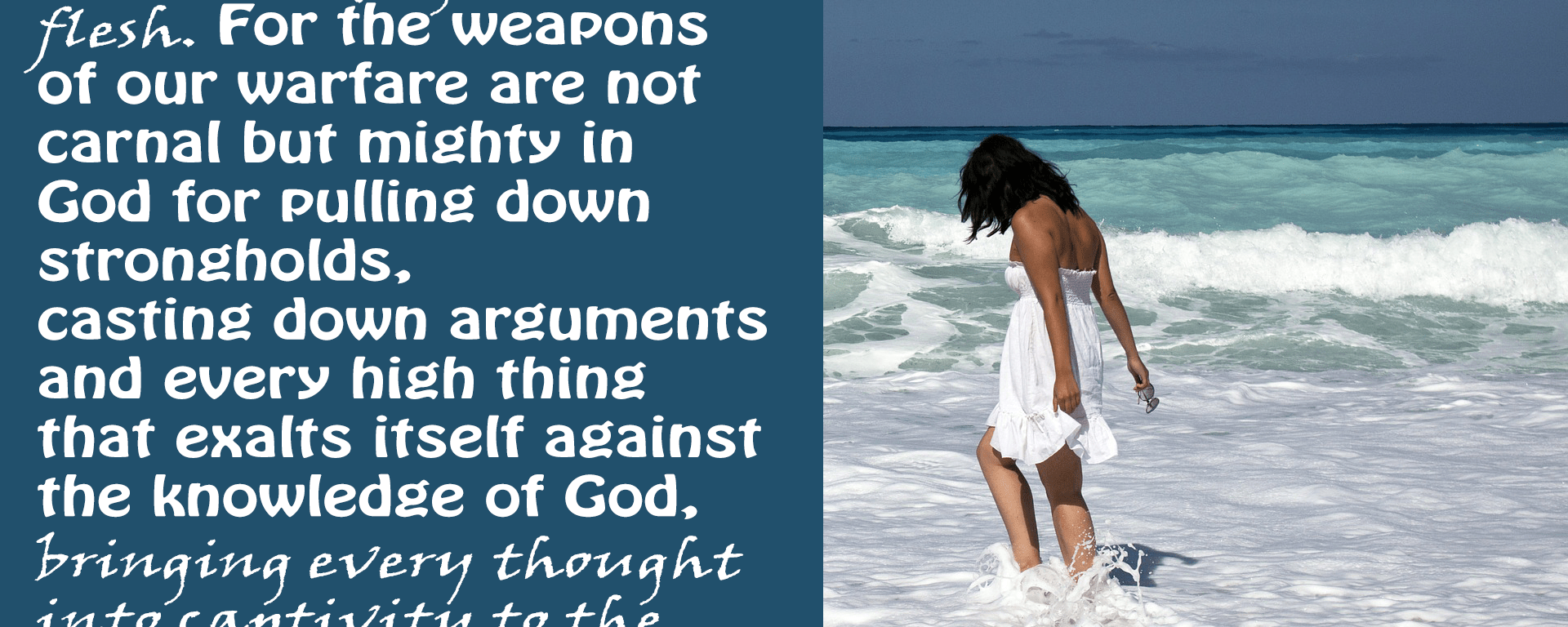 For though we walk in the flesh, we do not war according to the flesh. For the weapons of our warfare are not carnal but mighty in God for pulling down strongholds, casting down arguments and every high thing that exalts itself against the knowledge of God, bringing every thought into captivity to the obedience of Christ.