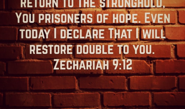Zechariah 9:12 Return to the stronghold, You prisoners of hope. Even today I declare That I will restore double to you. Continue reading Daily Meditation – Prisoner of Hope